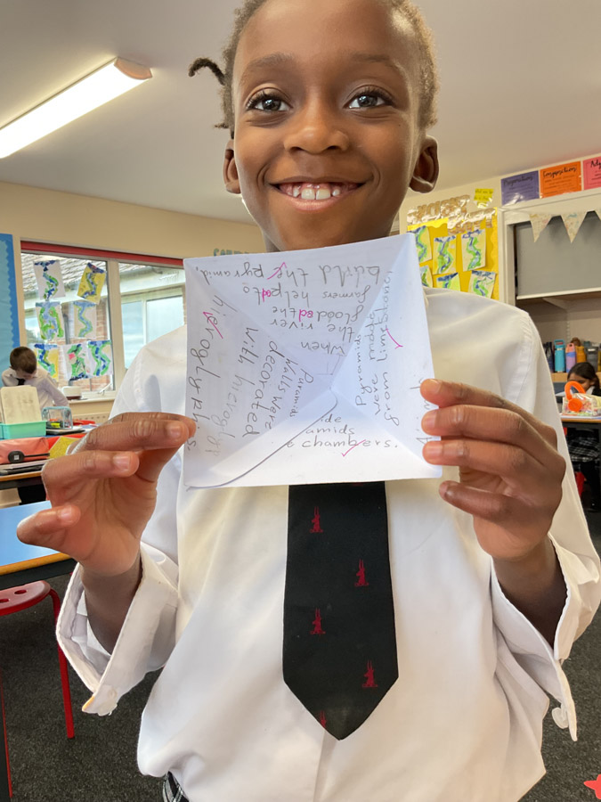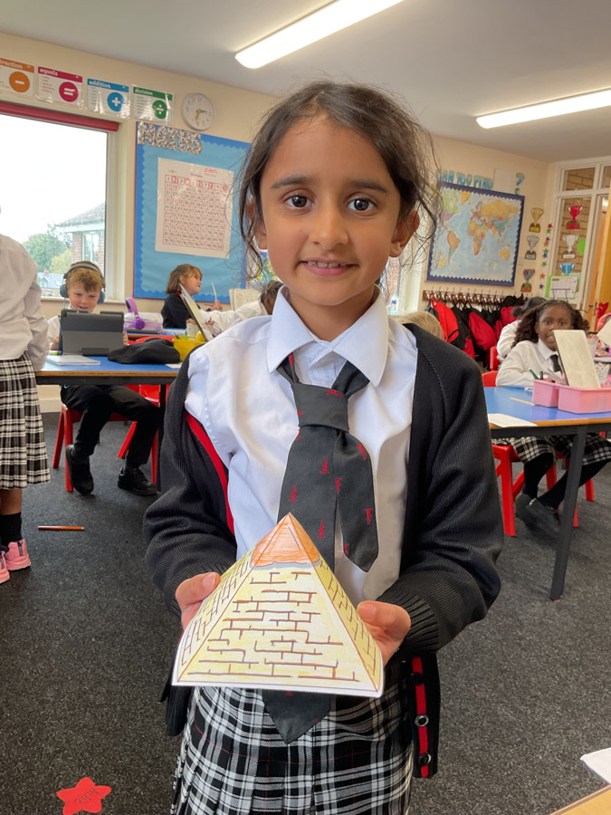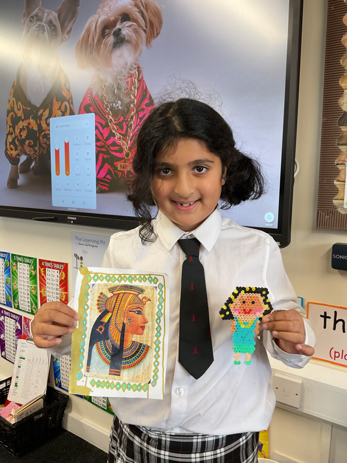 Learn Like an Egyptian in Year 3 17th October 2025 Global This week, Year 3 have been diving deep into the fascinating world of Ancient Egypt! The children have been learning all about the incredible pyramids — how they were built thousands of years ago, what materials were used, and why they were such important monuments. They discovered that the pyramids were built from huge limestone blocks, carefully placed by skilled workers using clever ramps and tools — all without modern machines! The children were amazed to learn just how tall these structures are, with the Great Pyramid of Giza originally standing at around 146 metres high. Liyanna was so inspired by our Ancient Egypt topic that she created her very own Cleopatra using Hama beads! Her colourful design shows great attention to detail and creativity — a wonderful way to bring history to life through art. Well done, Liyanna! Isabella wowed everyone with her amazing handmade pyramid – she carefully designed and built her own model pyramid to share with the class. Isabella’s creativity and enthusiasm helped bring Ancient Egypt to life for everyone! Well done Isabella!