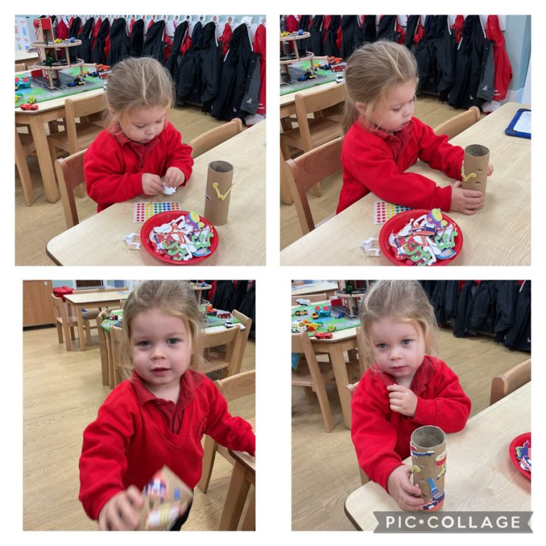 Preschool Make Their Own Music 17th October 2025 Nursery Building on our discussion of ‘Five Minutes’ Peace’, we decided to create our own recorders, following Lester’s example in the story. We developed our fine motor skills by peeling stickers and carefully applying them to cardboard tubes. The activity was really enjoyable, and we had the opportunity to demonstrate our new recorders to Mrs Hastilow, Head of Music who was very impressed.