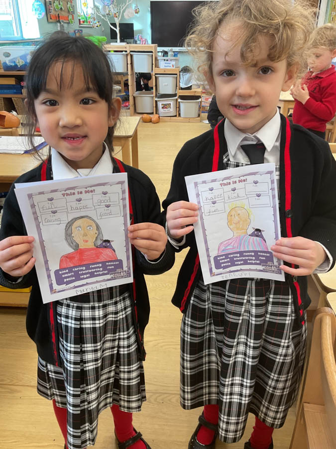 Reception Explore Mental Health 13th February 2026 Pre-prep This week in Reception, we have been learning about children’s mental health. We explored what mental health means, why it matters, and how we can look after it. We talked about different feelings and what makes us feel each way. We also thought about belonging and how our voices are important. The children shared what makes them unique and what is important to them. They then created lovely self‑portraits and added words to describe themselves, along with the special people, places, and things that matter most in their lives.