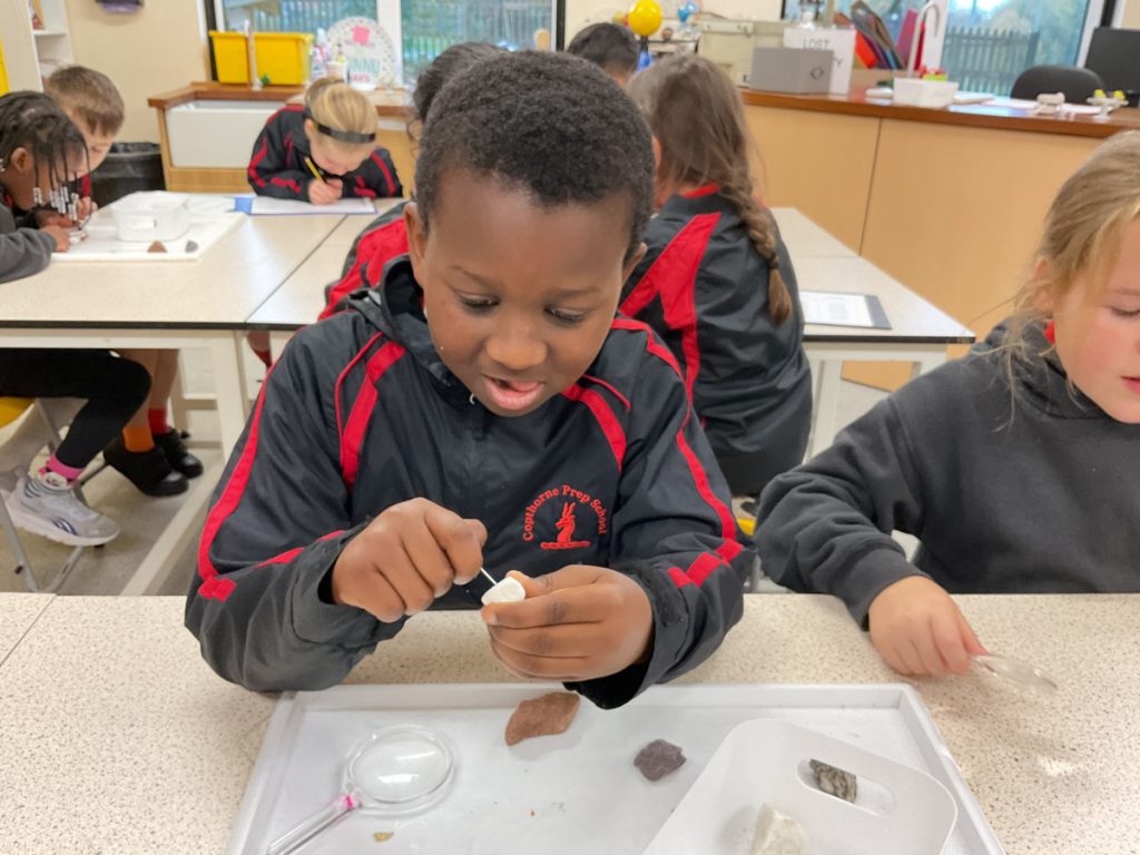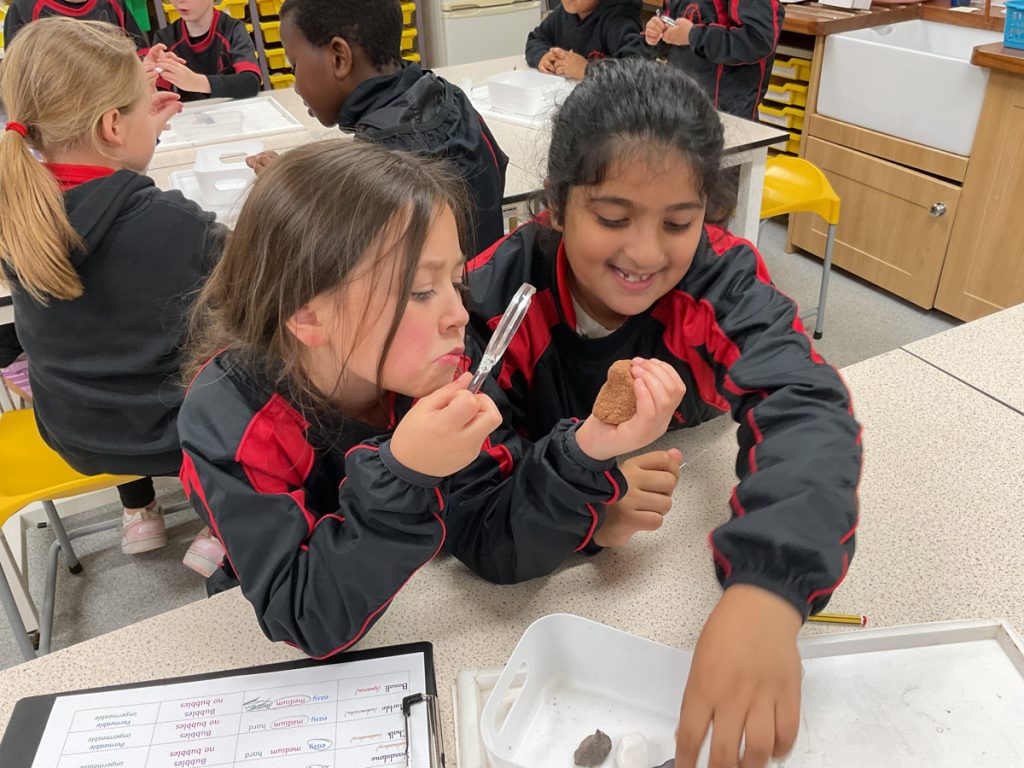 Rocking Our Science Lessons! 14th November 2025 Science This week, Year 3 have been busy investigating the different properties of rocks. They tested the hardness and permeability of various samples and even explored how rocks might react to acid rain by carefully adding vinegar with a pipette. It was a fascinating, hands-on way to discover more about the world beneath our feet!