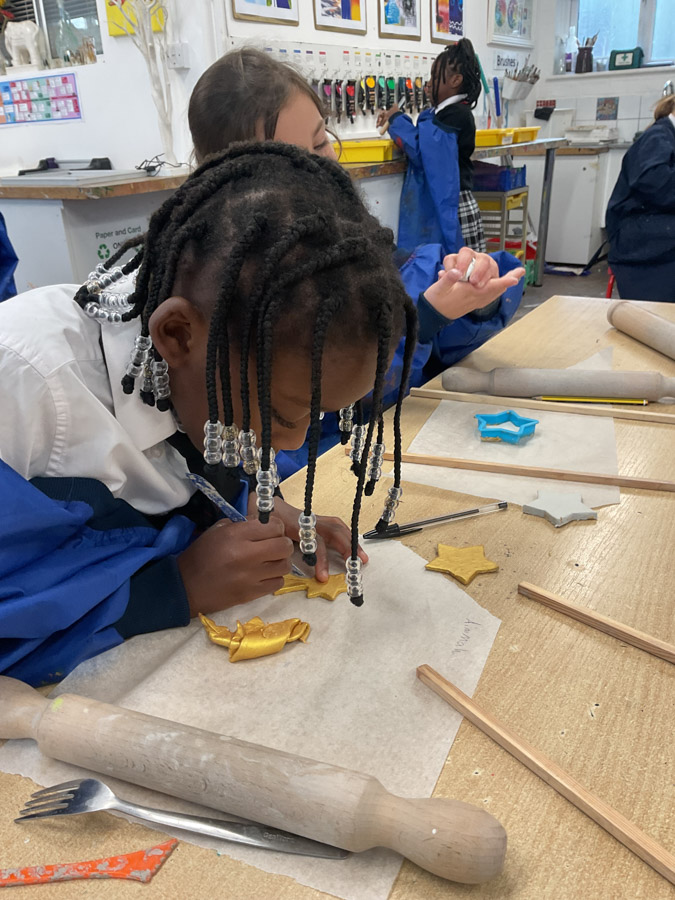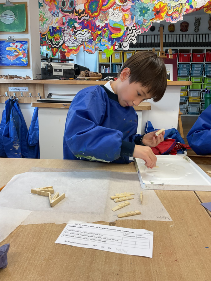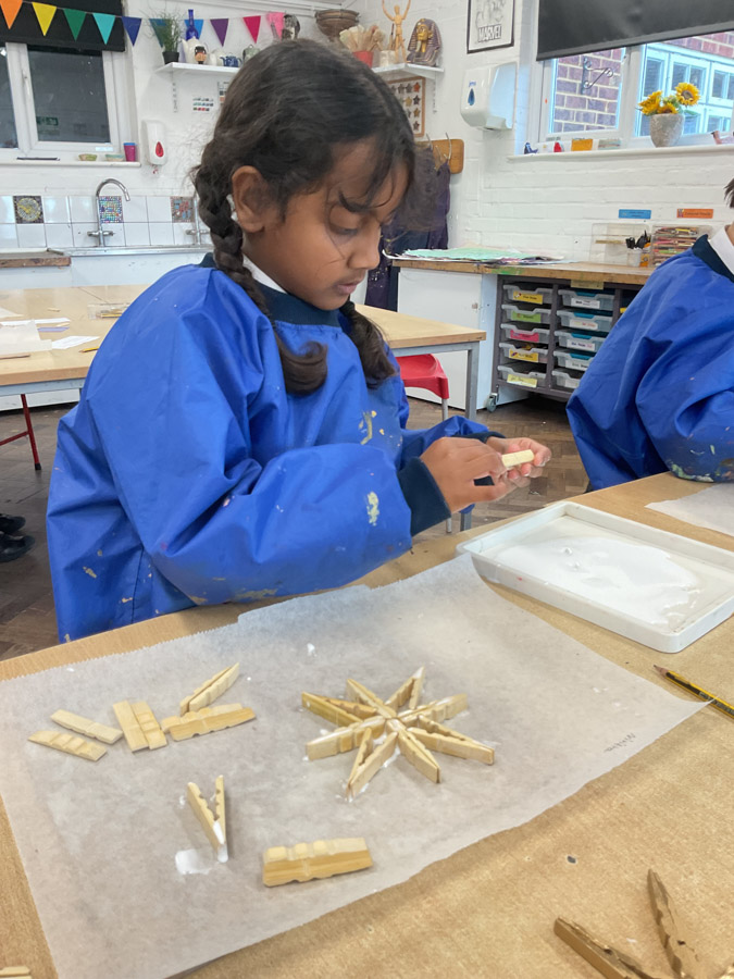Starry Creations Shining Bright 28th November 2025 Creative Arts In Art over the past few weeks, the pupils have been hard at work creating stunning star decorations for the school. Their beautiful designs now glow throughout the front of the school and in the theatre, adding an extra festive touch. Using a variety of materials and techniques—including clay, paper folding, clothes pegs, and collage—the children showcased their creativity and craftsmanship. They have loved seeing their artwork on display and are excited to take their stars home for the holidays.