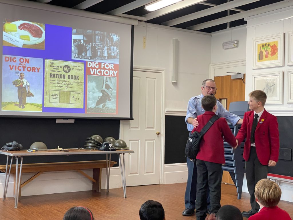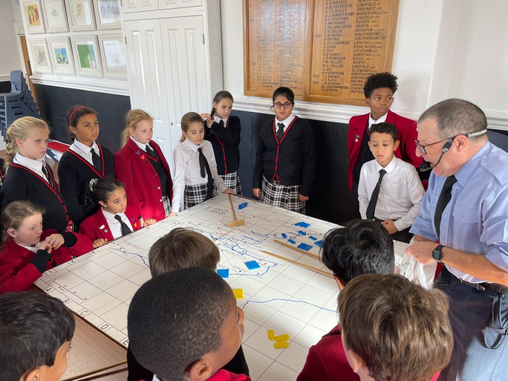 Year 6 Investigate the Battle of Britain Through Role Play 21st November 2025 Uncategorised On Thursday, Year 6 pupils had a wonderful opportunity to learn and reenact the Battle of Britain with a hands-on workshop. The Year 6 Global question this term is ‘Why do we have wars?’ and they have been looking at the causes of both world wars and debating whether they were inevitable. This workshop allowed them through role play to understand how the war impacted on civilians, especially those in London. They also learnt how the Dowding system worked taking part in the Fighter command and the Filter rooms which helped them understand how enemy craft could be detected and then intercepted. Well done Year 6 – you really took it all on board and asked some super questions throughout the session.